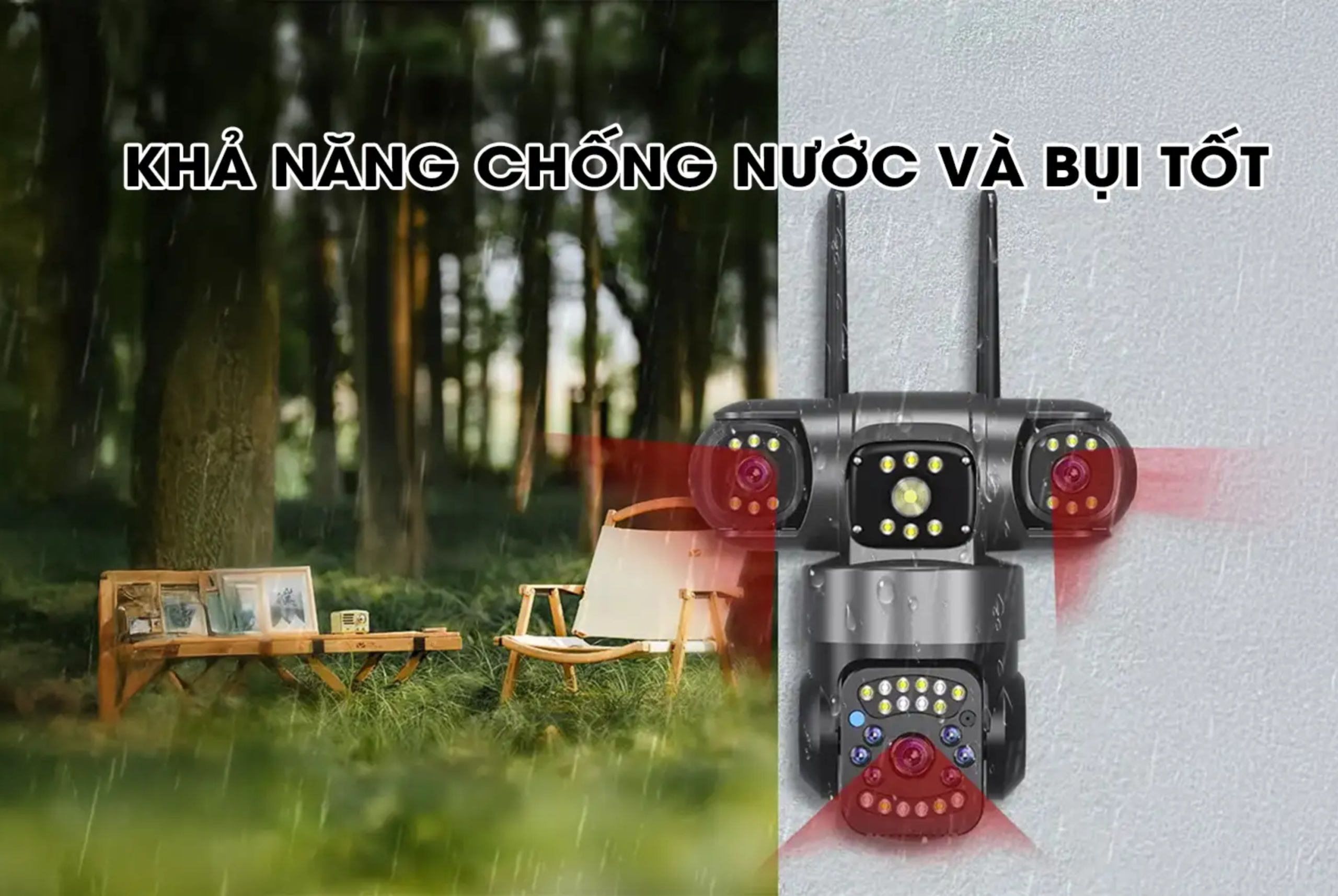 Đây là ưu điểm nổi bật của dòng camera Yoosee 3 mắt ngoài trời. Nhờ lớp vỏ bảo vệ chắc chắn, thiết bị hoạt động bền bỉ dưới nắng mưa, thích hợp lắp đặt tại sân nhà, cổng, gara hoặc khu vực sản xuất.
